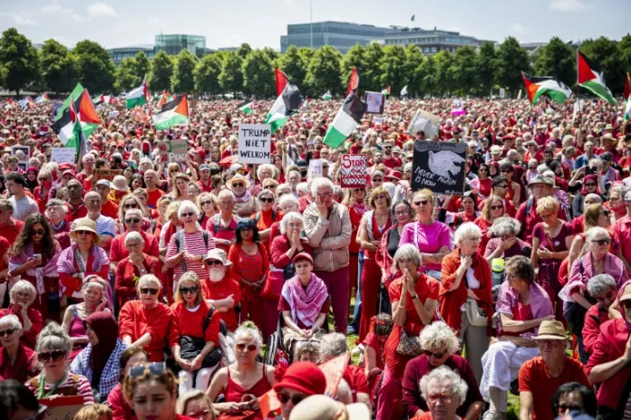 Aksi protes masif berlangsung di Den Haag, Belanda, dan Brussel, Belgia, dengan para peserta mengenakan pakaian merah sebagai simbol peringatan keras atas kekejaman yang terus berlangsung di Gaza.
