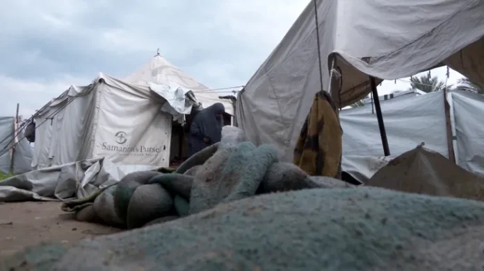 Hujan deras menggenangi tenda-tenda pengungsian, pusat penampungan, dan tempat perlindungan darurat di berbagai wilayah Gaza.