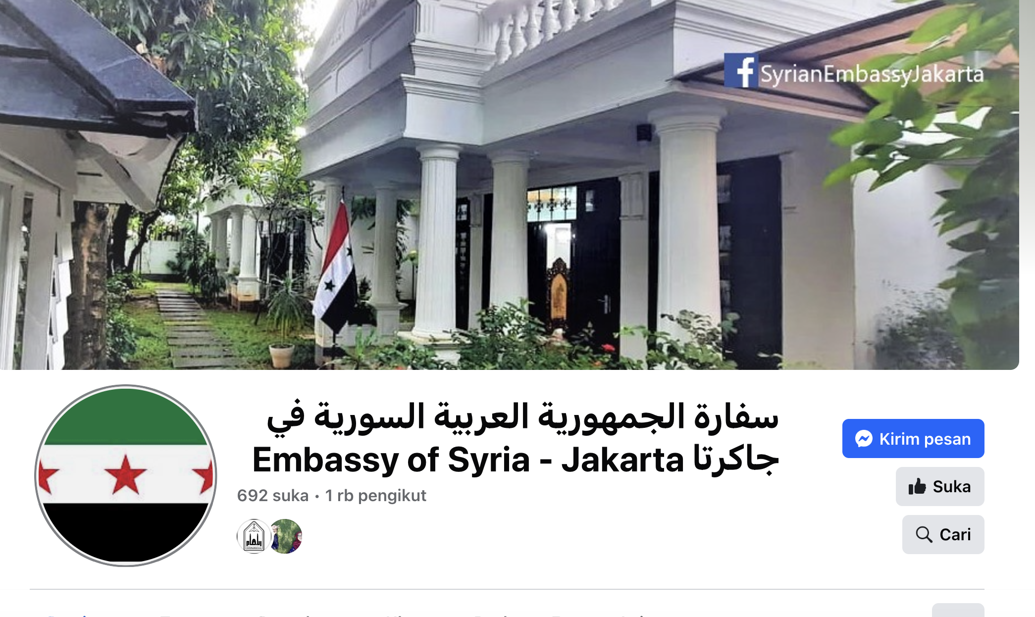 Pada halaman tersebut, Kedutaan juga membagikan pernyataan resmi dari Kementerian Luar Negeri Suriah, yang berbunyi: