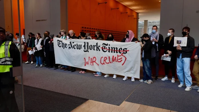 Kelompok itu bahkan menyebut NYT sebagai “The New York War Crimes” dalam sejumlah aksi protes yang digelar di luar maupun di dalam lobi gedung NYT di Manhattan, sejak serangan Israel ke Gaza dimulai setelah peristiwa 7 Oktober 2023.