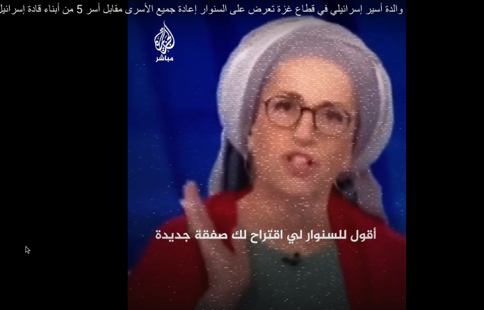 Seorang wanita Israel yang merupakan orang tua dari salah satu sandera yang ditawan di Gaza, memberikan tawaran langsung kepada pemimpin Hamas, Yahya Sinwar. Wanita itu menawarkan pertukaran 109 sandera Israel ditukar dengan 5 anak pejabat Israel.