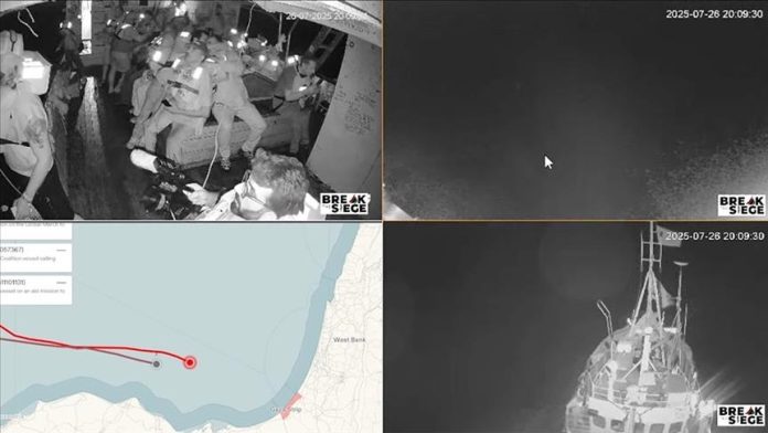 Rekaman itu menunjukkan tentara Israel menaiki kapal dan memerintahkan para aktivis yang berada di dalamnya untuk mengangkat tangan.