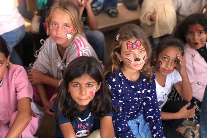 Di sekolah tenda ini, sekitar 1.150 anak pengungsi, termasuk 700 anak yatim, mengikuti program pendidikan dan kegiatan rekreatif.