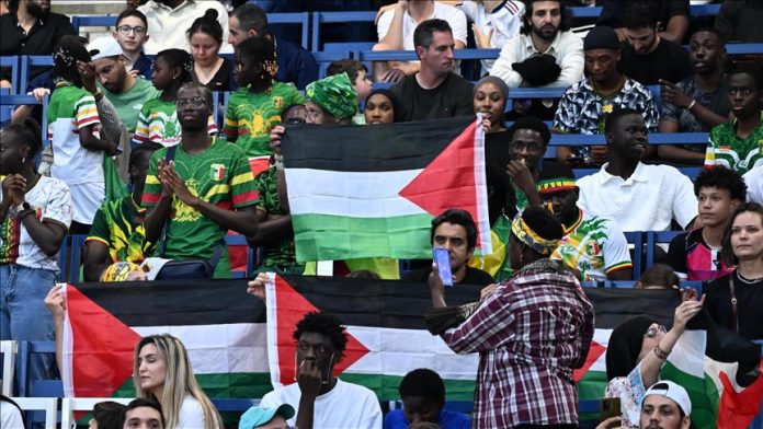 Anadolu melaporkan, Israel bermain imbang 1-1 dengan Mali dalam pertandingan sepak bola Olimpiade di Stadion Parc des Princes Paris. Banyak penggemar di tribun yang memprotes Israel dengan mengibarkan bendera Palestina.