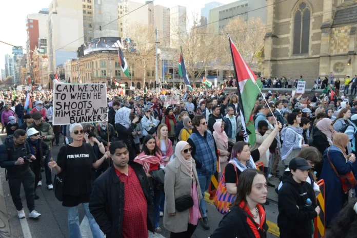 Puluhan ribu warga Australia turun ke jalan di lebih dari 40 kota dan daerah pada Minggu (24/8/2025) untuk memprotes perang yang terus berlangsung di Gaza. Para demonstran mendesak pemerintah federal agar menjatuhkan sanksi kepada Israel dan menghentikan perdagangan senjata dengan negara tersebut, sebagaimana dilaporkan media lokal SBS dan kantor berita Anadolu.