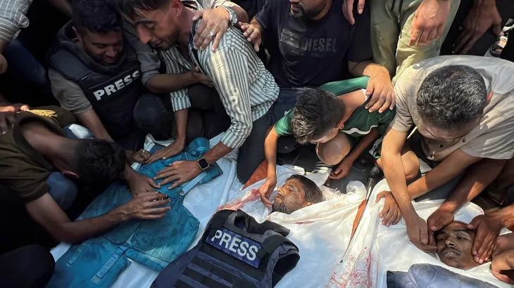 Organisasi Reporters Without Borders (RSF) menyatakan kemarahan mendalam atas terbunuhnya sejumlah jurnalis dalam serangan udara Israel ke kompleks medis Nasser di Khan Younis. Korban termasuk juru kamera Al Jazeera, Mohamed Salama.